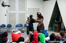 | 会場となった川崎市産業振興会館 | 朝は受付が大混雑!それでもスムーズに入場していただけました | 一足早いサンタクロースな格好でお出迎えしてくれた皐月くん |